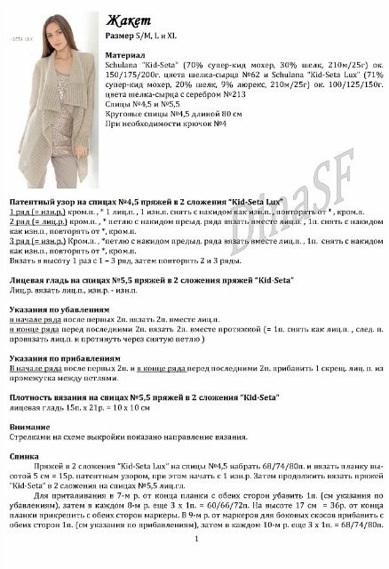 Вам потребуется: 350/400/450/500/550 г синей (Bleu Saphir), 200/250/300/350/400 г тёмно-синей (Marine) пряжи Anny Blatt Merinos (100% мериносовой шерсти, 125 м/50 г), 100/150/150/200/200 г синей пряжи Anny Blatt Muguet (100% полиамида, 200 м/50 г), 50/50/50/100/100 г чёрно-белой пряжи Anny Blatt Armide (37% вискозы, 30% шерсти, 22% полиэстера, 8% шёлка, 3% люрекса, 57 м/50 г); спицы № 3,5, крючок № 3, молния длиной 45 см, 2 молнии длиной 10 см.