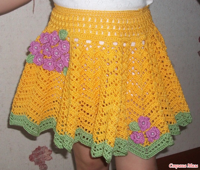 [показать]Юбочка связана нитками Пехорка успешная, крючок 2, цветочки - rose vita