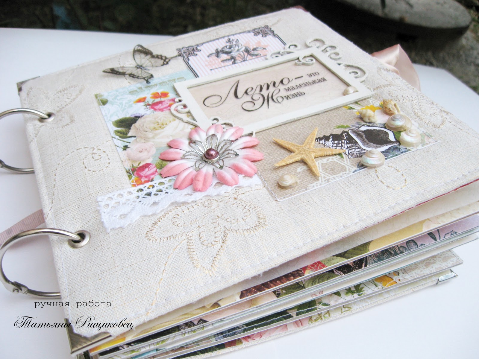 Добрый день! За окном последние тёплые денёчки, солнышко не жарит как летом, а вечер дарит такую долгожданную после лета прохладу. Осень моя любимая пора, всего в ней в меру и тепла и солнца и прохлады, и ветра не такие сильные как весной и летом, какая то она умиротворённая что ли. И я себя так же чувствую. Ух хорошо с таким настроением шедевры создавать. Вот я и сделала альбомчик об уходящем лете, на шедевр не претендую, но на приз зрительских симпатий всё же рассчитываю)))