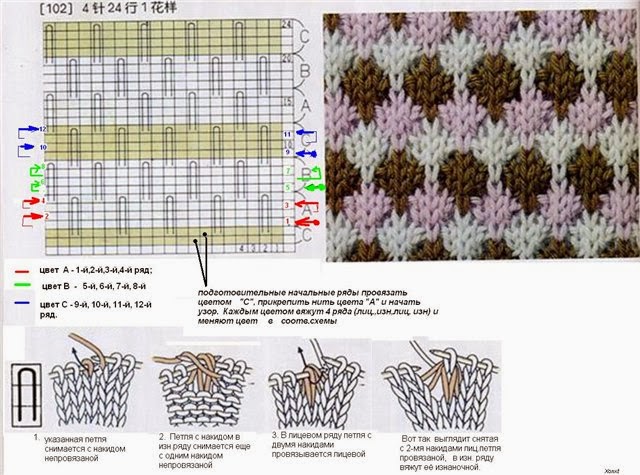 ДВУХЦВЕТНЫЙ УЗОР ИЗ НАКЛОННЫХ ПЕТЕЛЬ