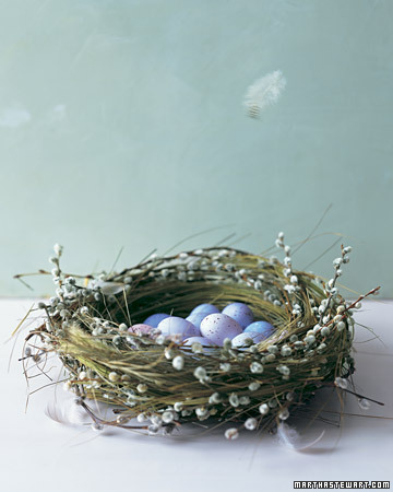 Часто в качестве декора используют пустотелые яйца. Для этого в яйце делают два отверстия (напротив друг друга) с помощью острой иглы и выдувают внутреннюю жидкость. Разрисованные или окрашенные яйца используют для оформления букетов и венков.