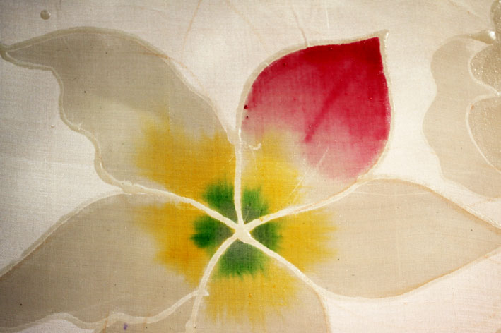 [320x213] Теперь закрасьте все лепестки. Вы видите на фото пока ещё мокрую ткань, а , когда она высохнет - всё немногко изменится. Частицы краски мигрируют, поверхность раскраски становится более равномерной. И на этом можно былог бы закончить, но... Мне очень скучно раскрашивать цветочки, хочется добавить к этому уроку что-то вкусненькое.. Пока ткань мокрая, можно 15 простых способов выглядеть моложе на...!!!