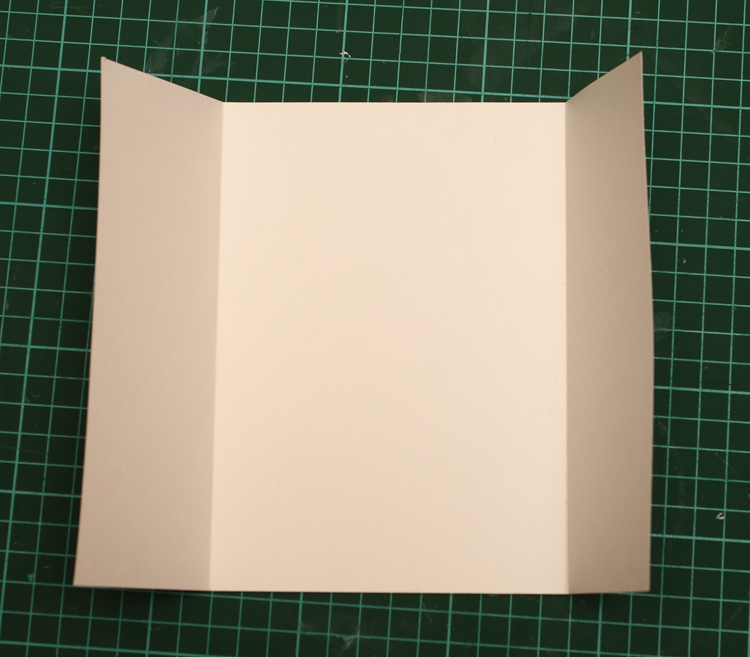 Начнем с того, что картон размером 24х17 см разделим на три части по длинной стороне 6см-12см-6 см, затем пробигуем (совершенно не обязательно открытку делать именно таких размеров, я их привожу для наглядности). Т. е. получаем открытку размером 12х17 см, с двумя дверцами 6х17 см: