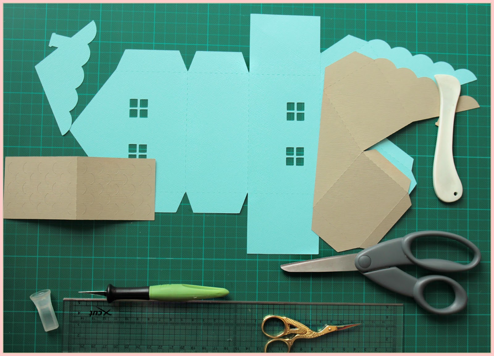 Здесь видны места сгибов, очерченых иголочкой и надрезы, для складывания коробочки.