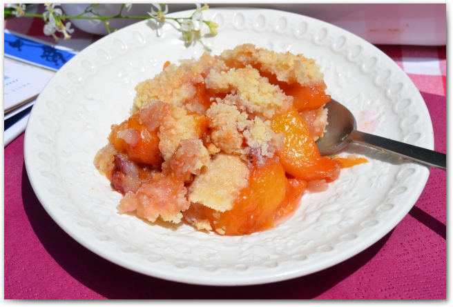 Рецепт из книги Le Cordon bleu «Dessert techniques». Это простой и очень популярный британский десерт из свежих фруктов и крошки из теста. С английского языка слово «крамбл» переводится как «крошка». В классическом варианте рецепта кладут яблоки, но так же можно делать его из слив, персиков, нектаринов, абрикосов, груш, клубники и даже ягод. Или делать смесь из фруктов, например к нектаринам добавить груши, а к клубнике ревень.