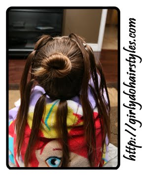 [показать]I eventually realize that this loose bun just isn't keeping that pony tail out of my way to work and I tighten it up. You will now make a bunch of pony tails all the way around the outside of the hair.