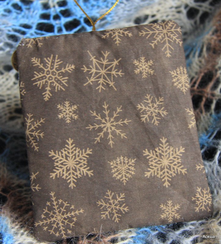А с обратной стороны подвески с Ангелом вот такая новогодне-снежинчатая тканька: