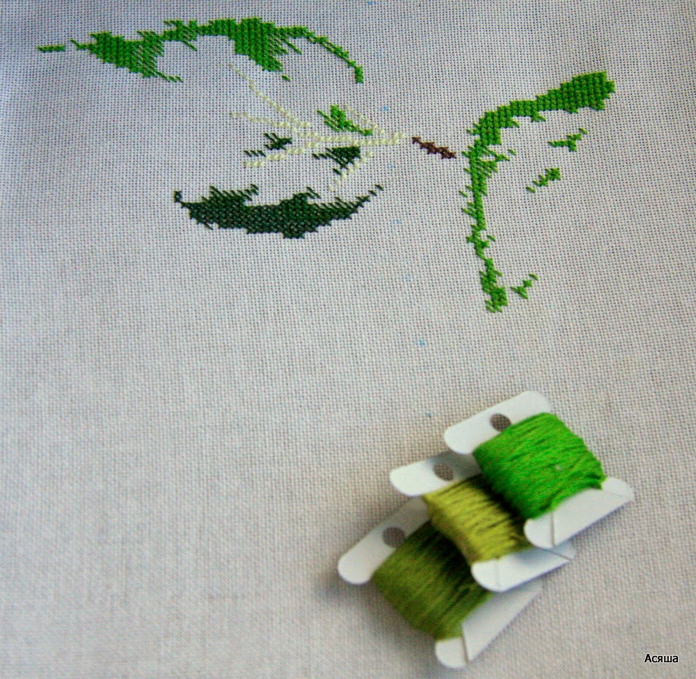 с открытием магазинчика стало гораздо меньше времени на вышивку, но тут я не смогла отказать себе в удовольствии. Так захотелось зеленого, что я спонтанно выбрала дизайн и начала не откладывая вышивать Веточку березы от MTSA.