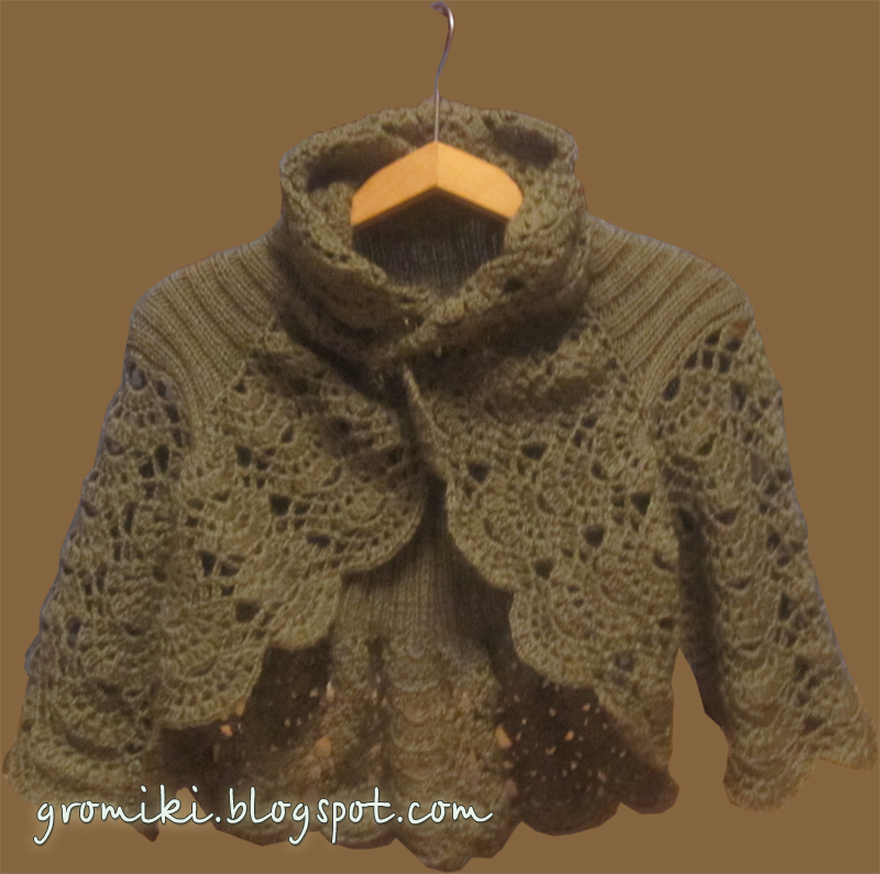 Пробовала, я пробовала и все равно выбрала тот же узор, которым вязала первое болеро.(Кстати оно вяжется точно также, даже количество петель одинаковое)