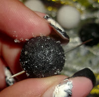 Сделав необходимое количество бусин с помощью толстой иглы делаем отверстия, плавно вкручивая иглу и ровняем бока бусины