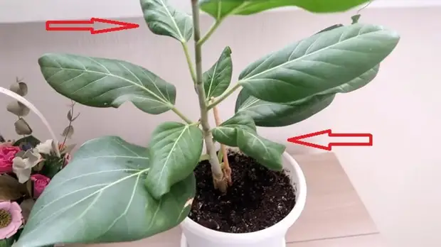 Обрезаем с черенков нижние листья, оставляя нетронутой область крепления листа к стволу, чтобы случайно не потревожить точки роста. Снизу делаем косой срез, чтобы черенок, временно оставшийся без корней, имел возможность получать как можно больше питания извне.