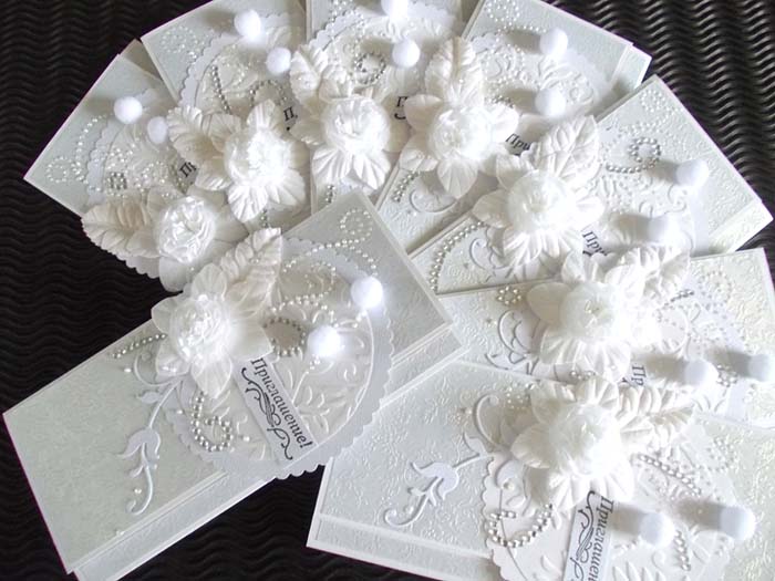 Воздушные!!!!! вдохновляющие и чудесные!!!!! очень нежные!!! они просто волшебные! как же повезло той паре, которая сообщит близким о своей свадьбе при помощи такой красоты!!!!!! даже одна карточка прелестна, а все в купе они просто ошеломляют белоснежностью!!!! Юлечка, спасибо тебе за эту воздушную