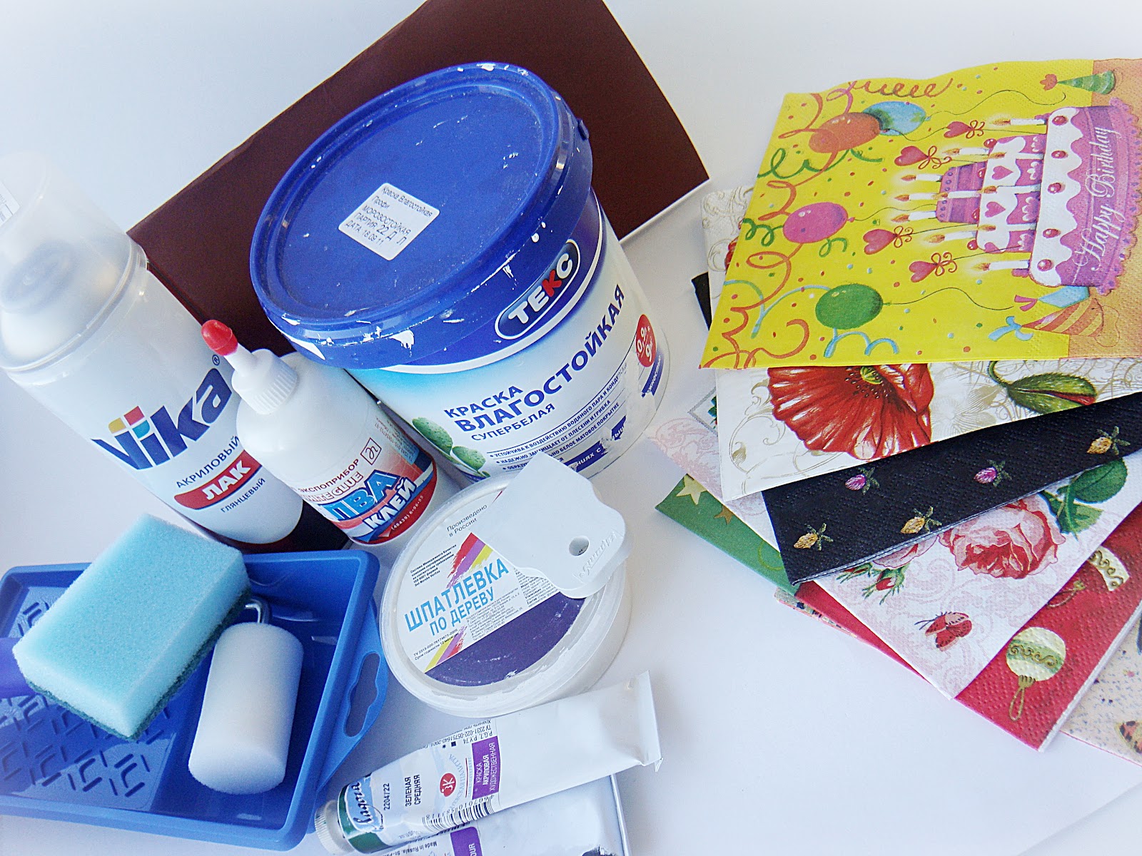 ВАЖНО: более плотные декупажные карты необходимо замачивать на несколько минут перед нанесением! Салфетки и тонкие карты наносим сразу.