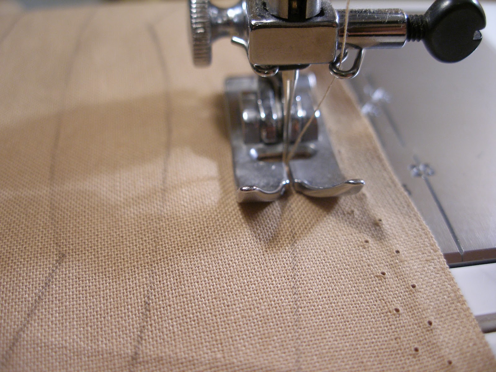 По обведённым линиям, ничего не вырезая предварительно, прошиваем на швейной машинке.