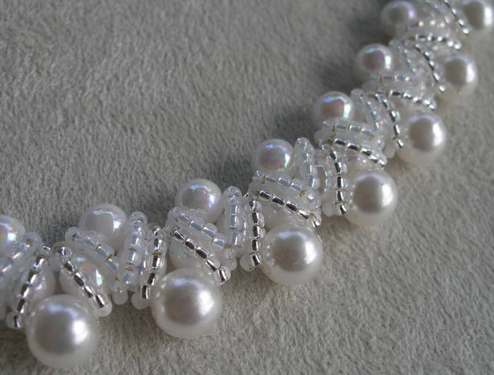Колье "К юбилею", по схеме Ольги Котельниковой (ОльгаК на бисеринфо) -бусины пластиковые "под жемчуг", бисер тохо