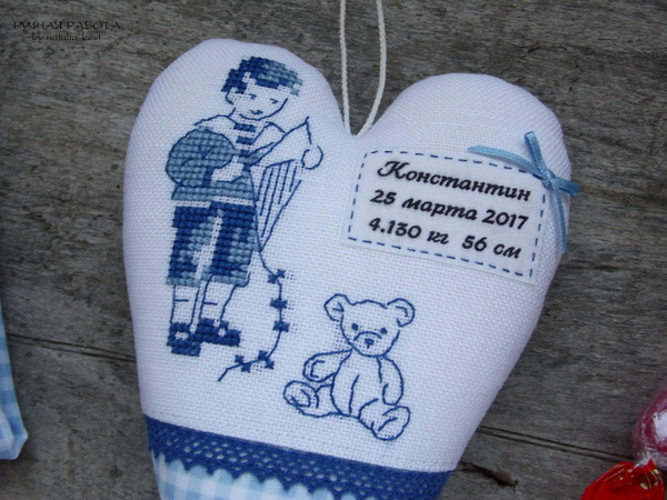 Метрику для сыновей моей заказчицы вышила её подруга, а вот оформление было доверено мне. Рама и материалы были подобраны практически сразу, но вот окончательная картина ну никак не хотела складываться. Я и так и сяк крутила-вертела, складывала-раскладывала-перекладывала и… откладывала. Но ведь оставлять долги в новом году ой, как не хочется, поэтому я взяла и взялась! За день оформление было готово!