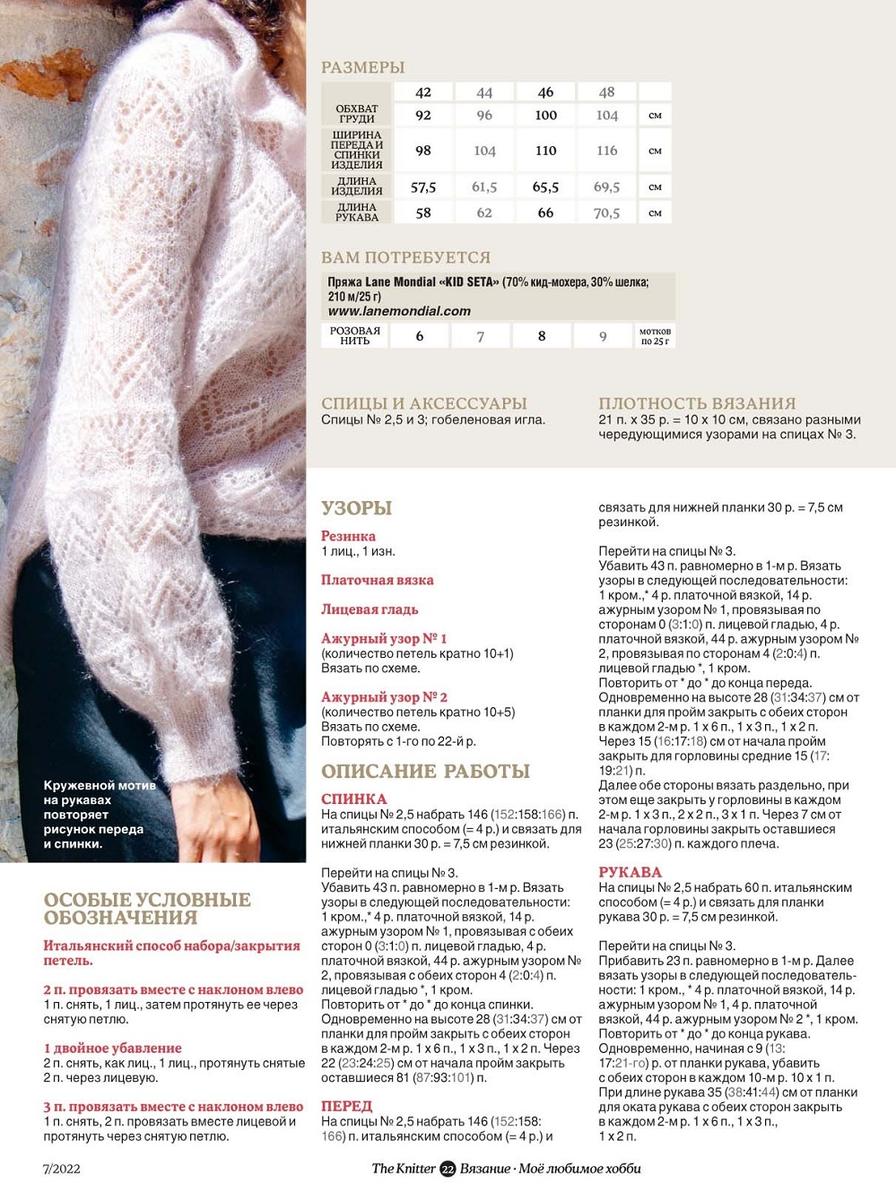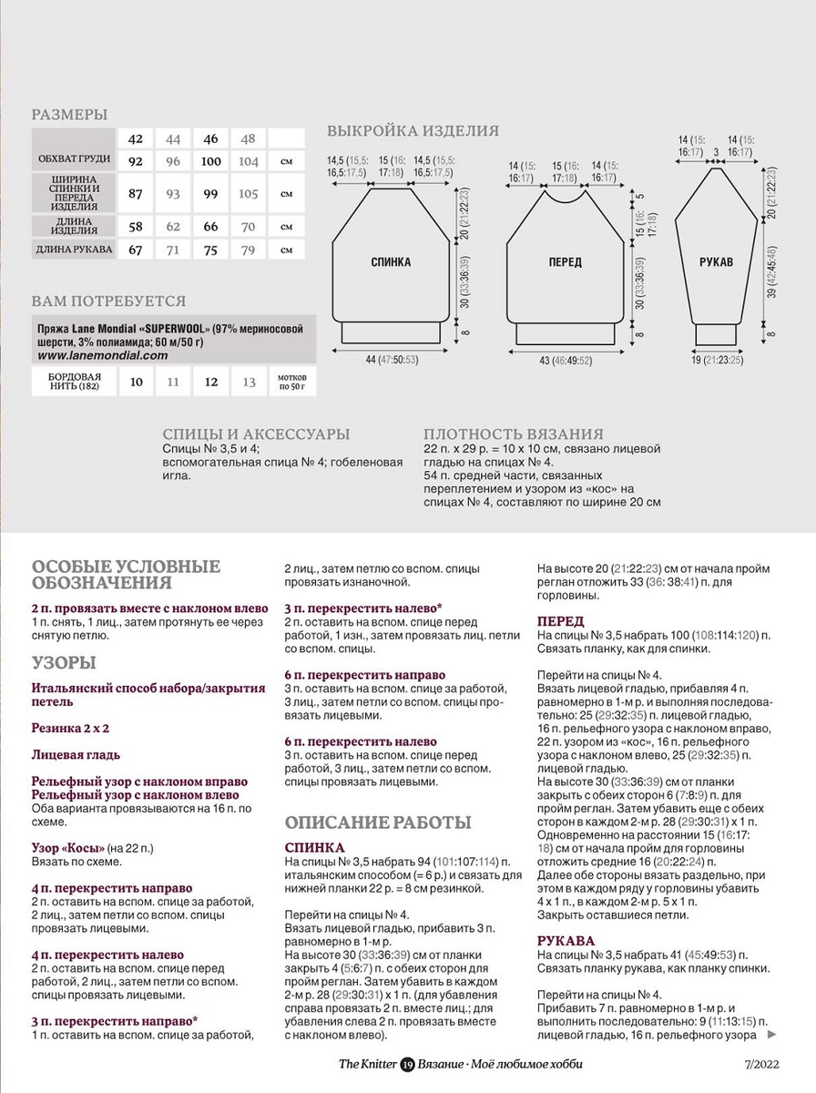 Инструкция-описание джемпера с круглой кокеткой, связанного на размер 46-48 при плотности лицевой глади 20п, 27р / 10 см. Расчетная ширина корпуса 57 см.