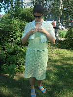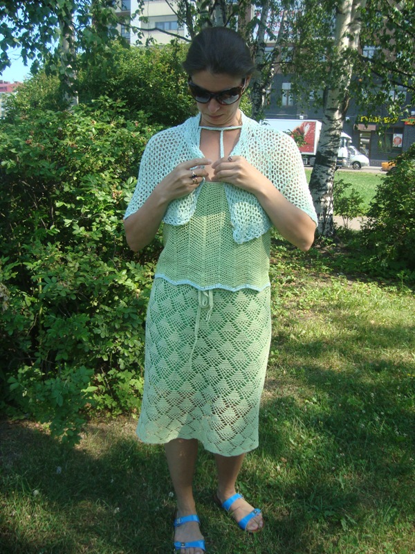 Комплект вязала давно, лет 5 назад, но юбочку еще надеваю, и сегодня реально ощутила на себе взгляды, даже со спины, и муж говорил, что смотрят. Поэтому решила дать схемки и описание. Пряжа хлопок.