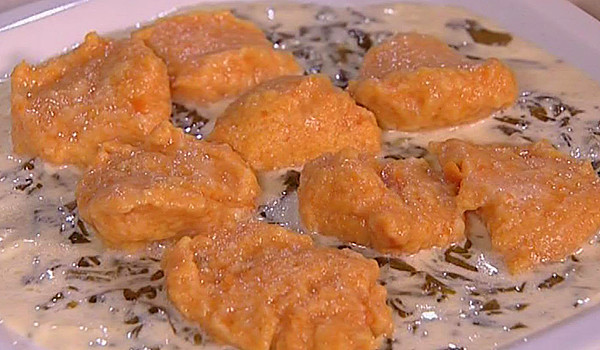 4. В сотейнике растопите сливочное масло с листиками шалфея. Перекладывайте готовые клецки в сливочный соус.