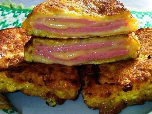 -фарш свино-говяжий , заправленный луком, солью и перцем (лук очень сильно измельчен блендером);