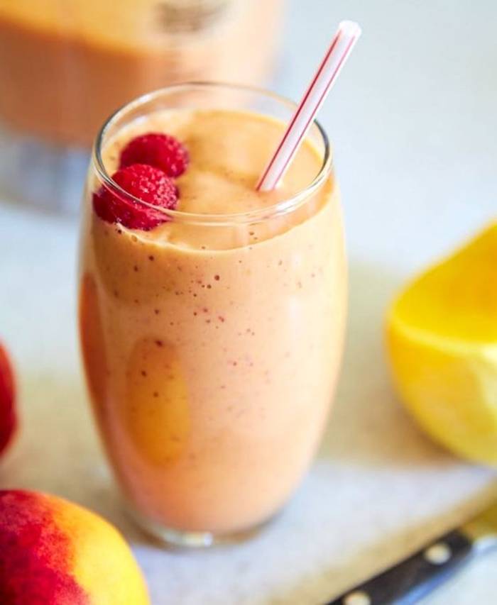 Смузи с персиком и малинойСмузи - отличный выбор в летнее время года для приготовления в домашних условиях.