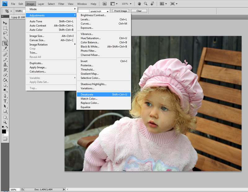 Image - Mode - Adjustments - Desaturate