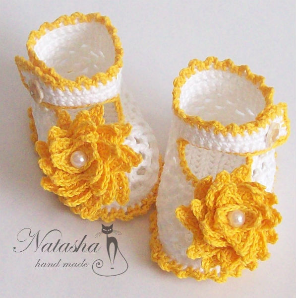 Вот связались еще одни пинетки. Назвала их хризантемки из-за цветочков, а вообще украсить их можно на свой вкус.