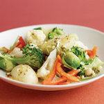 Лук и морковь измельчить, сельдерей, лук-порей и помидоры нарезать небольшими кусочками. Всё залить кипящей водой и варить до готовности. Корень имбиря почистить, измельчить (можно измельчить в блендере с небольшим количеством воды или натереть на тёрке) и добавить в суп. Дать настояться.