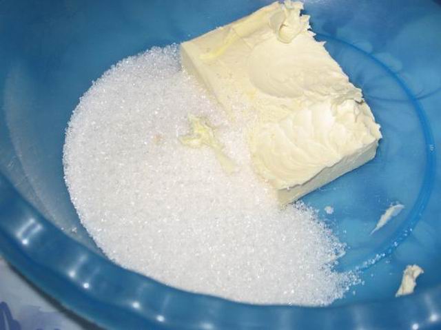 1. Хорошо взбиваем яйца с сахаром, ванилином, добавляем в эту массу растопленное масло, творог и хорошо аккуратно перемешиваем.