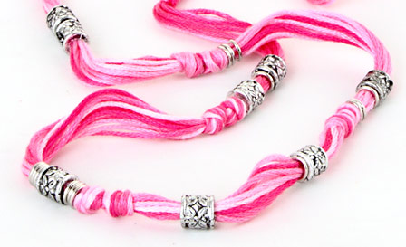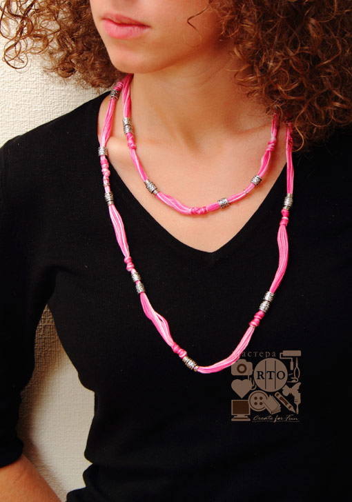 Раз уж мулине DMC не линяет и выцветает аж 30 лет, давайте сделаем из него... бусы!