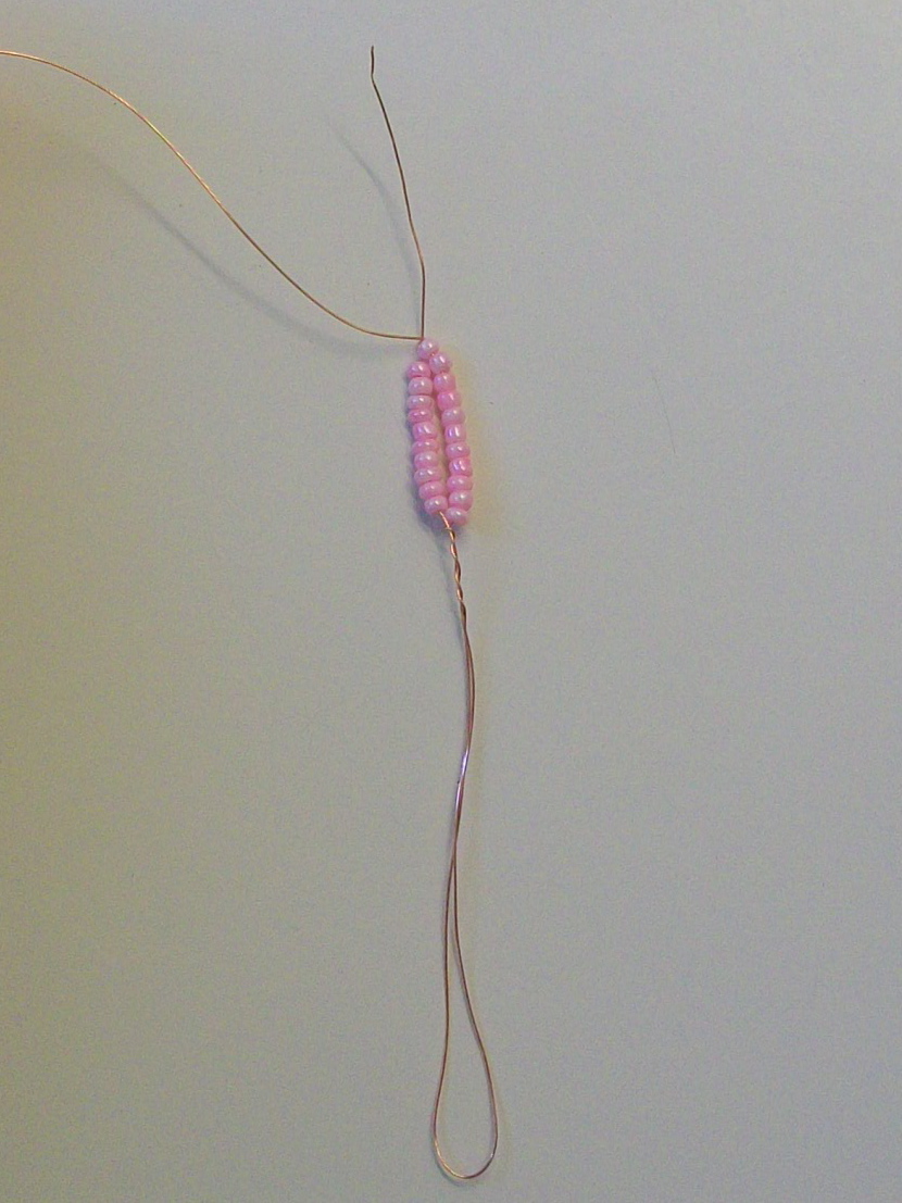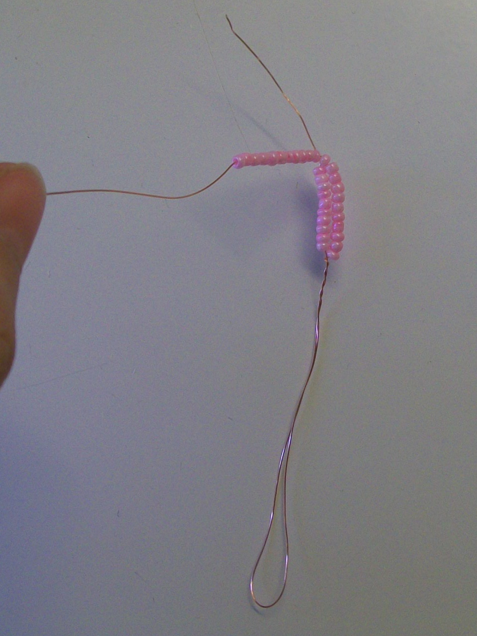 Важно не отрезать нитку! Чтобы набрать нужное количество бисера, просто передвигаем уже набранный бисер дальше по леске, освобождая место для нового: