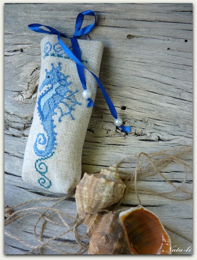 Вышивка, к сожалению, без выпендрежа, применение ей тоже прозаическое - очечник, поэтому все старания вложила в фото. Да и тема "журнал...море" предполагает много фотографий.