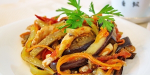 В летнее время года природа подарила нам изобилие овощей, из которых можно готовить разнообразные блюда. Одним из таких блюд является теплый салат из баклажан с куриным филе, томатами и сладким перцем. В этом салате прекрасно сочетаются все ингредиенты.