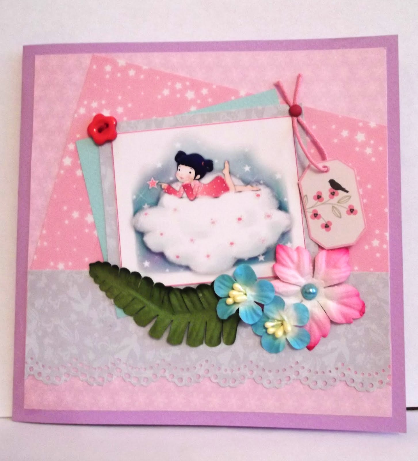 На днях сделала очередную открыточку, вдохновившись заданием от Яны Смакулы "Зроби сама" Завдання 13. Листівки із хмарками! Вот, что из этого получилось: