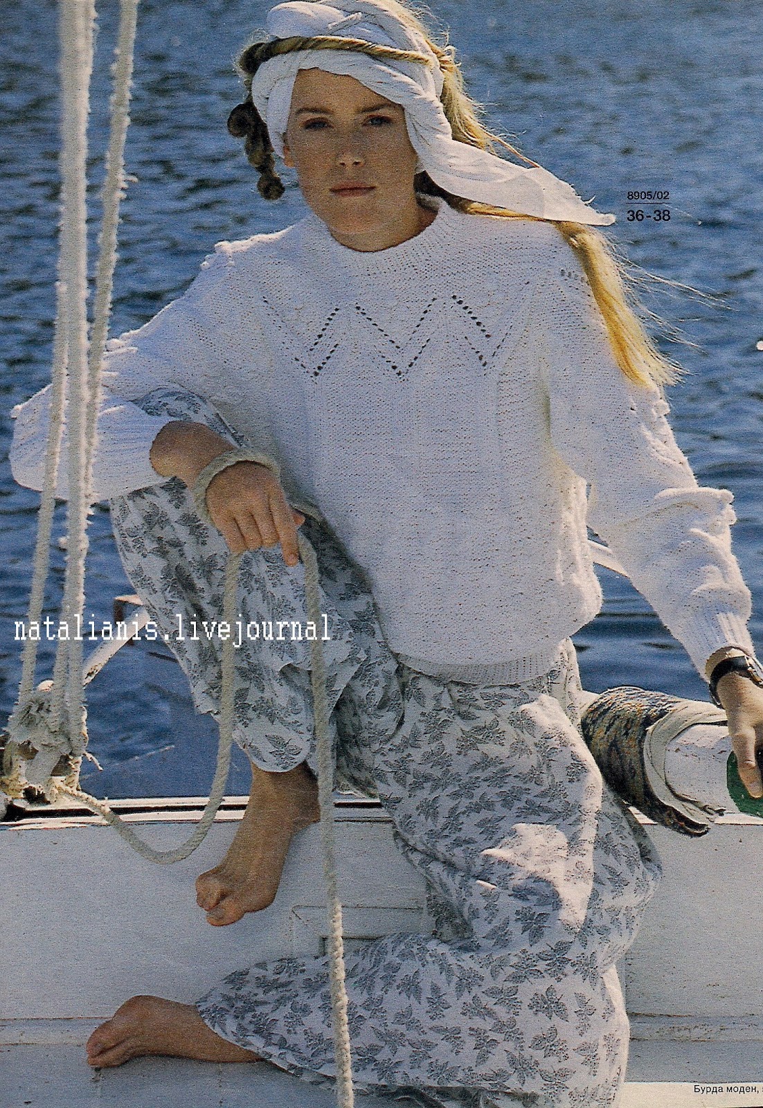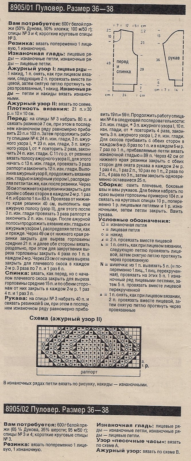 К этому вязаному свитерку Елена составила описание, а размеры даны также на одном из фото.