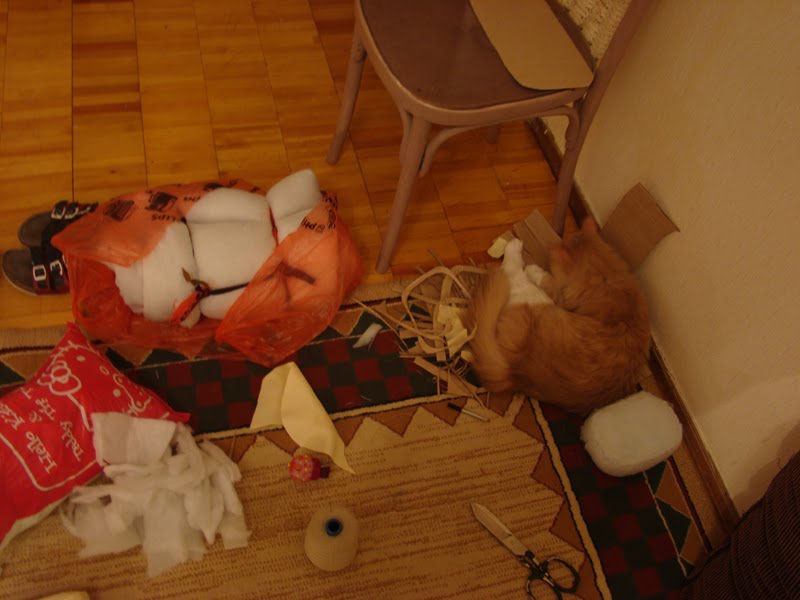 ЭлиФантов я упорно грязнила и старила соей косметикой. Бязь для Фанта кипятила в чае+кофе+какао+корица, но так и не поняла, получилось или нет. Ткань не состарилась, а такое впечатление, что её истаскали. Но, есть что есть.
