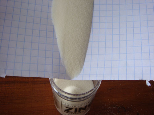 На этом рисунке вы можете увидеть часть картинки уже с расплавившейся пудрой и часть картинки нетронутой