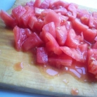 2. Снимаем с помидоров кожицу, очищаем от жилок и кусочками нарезаем. Можно выбрать семечки