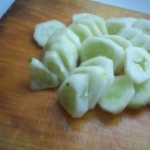 3. Очищаем от кожицы огурцы и нарезаем кусочками.