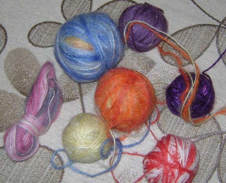 В МК не было ничего сказано про пряжу, но я решила, что лучше взять ангору, она будет чуть-чуть пружинить и лучше будет держать форму! Сказано-сделано, пошла искать маленькие клубочки ангоры, оставшиеся от подарочных шарфов!