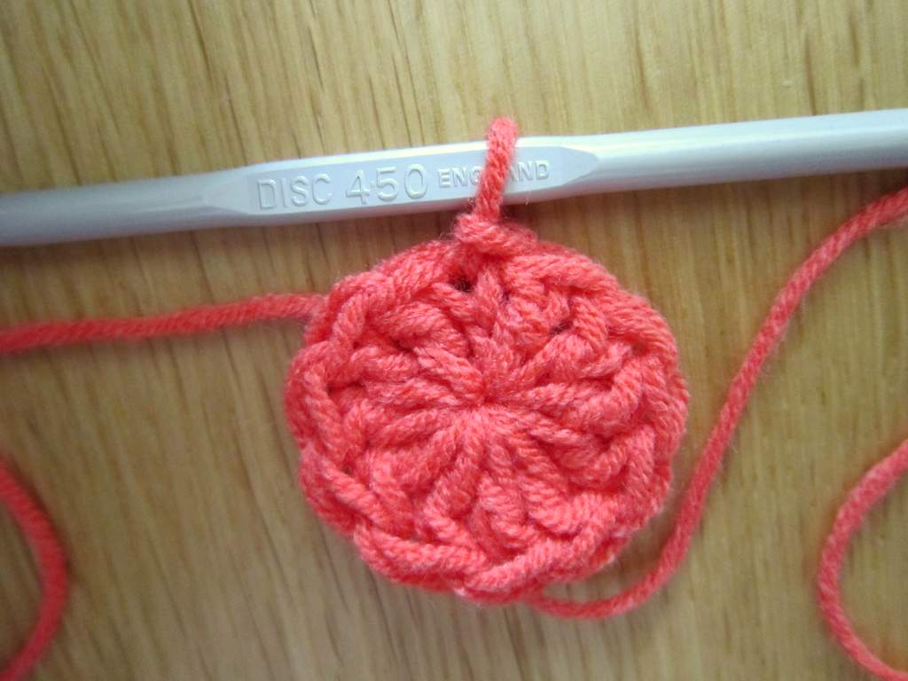 Make a magic circle, and chain 3, then work 11 dc into the ring, before tightening it up. 12 dcs.