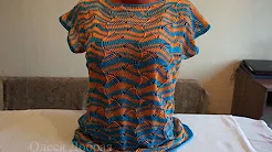 Переплетение: кулирная гладь, простой ажурный рисунок, резинка 2х2 через1.