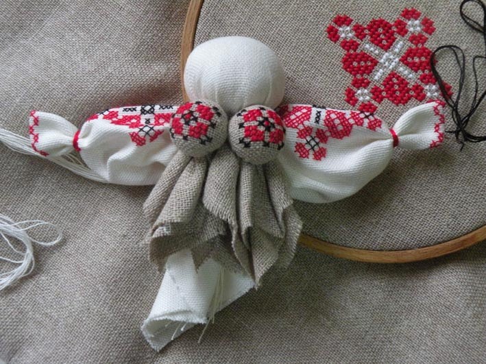15. Сверху подвязываем куклу пояском.