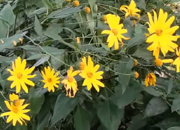 Солнечный цветок, научное название, отражает его внешний вид, а земляная груша назвали из – за его схожести с мелким картофелем, растет в садах у многих, разрастаясь без контроля как сорняк.