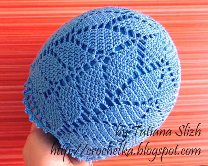 Смотрится такая шапуля потрясающе! Она воздушная, легкая, нежная, на головке практически неощутимая, но в тоже время прекрасно защитит от солнечных лучей. Можно вязать любыми ниточками на ваше усмотрение, но рекомендую брать 100% хлопок. Цвет также выбираете, какой Вам больше по душе. Эта шапочка выглядит эффектно в любом цвете.