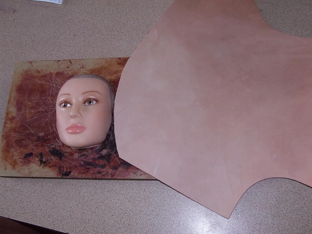 Теперь начинается самое интересное .. формирование складок и изгибов в форму, которую вы задумали. Иногда кожа диктует, где складки и где повороты, это надо учитывать в процессе работы. Я считаю, это также зависит от изначальный формы и качества кожи . Используйте зажимы и кнопки ( для основной фиксации) это поможет сохранить складки, где вы хотите их.Зажимы снимают после полного высыхания. Не забывайте использовать полоску кожи под зажимами, так что вы не оставлять следов на маске .