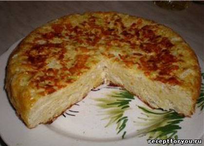 Способ приготовления: из яиц, муки, майонеза, сахара, соли, и соды готовим тесто. Дно формы смазываем маслом, выкладываем мелко нашинкованную и слегка перетертую с солью капусту, заливаем тестом.