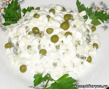 [показать]Ингредиенты: 100 грамм плавленого сыра, пару сваренных вкрутую яиц, 3 стол.л. зеленого горошка (консервированного), пучок зелени петрушки, 4 стол.л. майонеза, соль- на Ваш вкус.