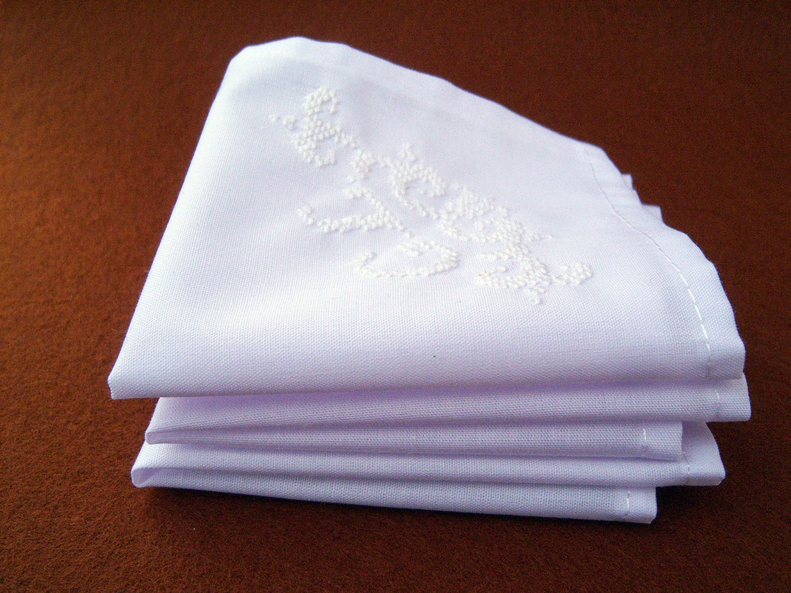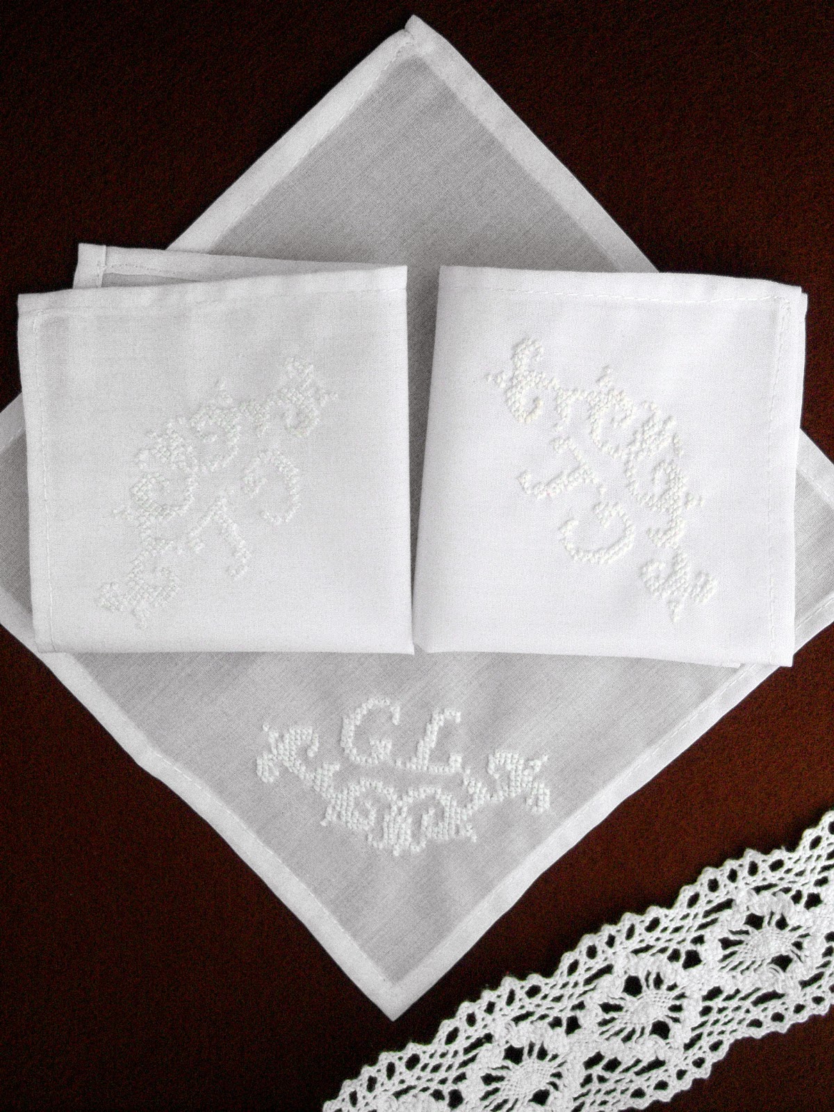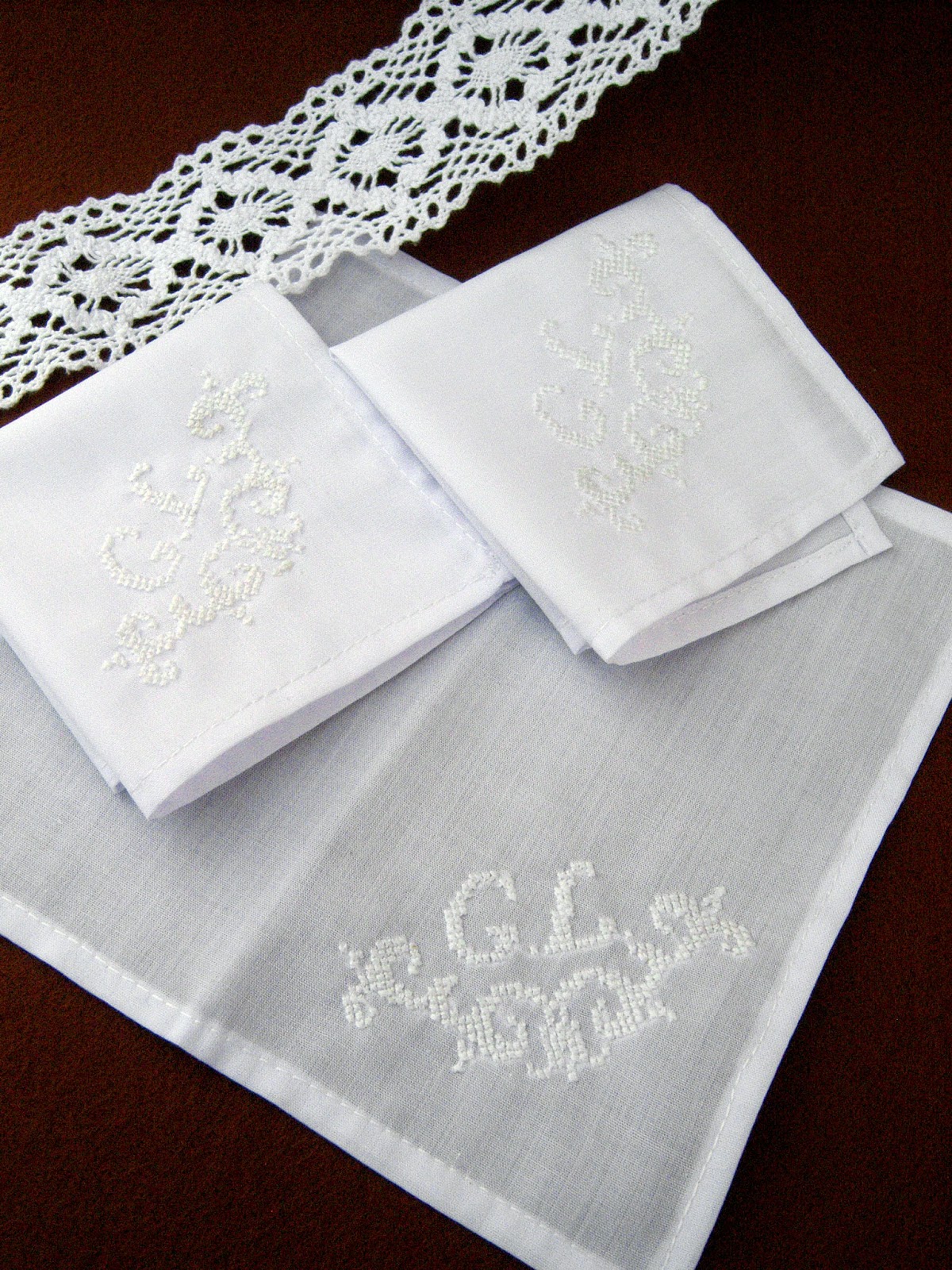 Носовички робила на замовлення, з вишитими ініціалами. Думаю, вони швидше виконуватимуть декоративну роль, хоча пошиті з попліну, тому і за призначенням цілком можна використовувати :-))