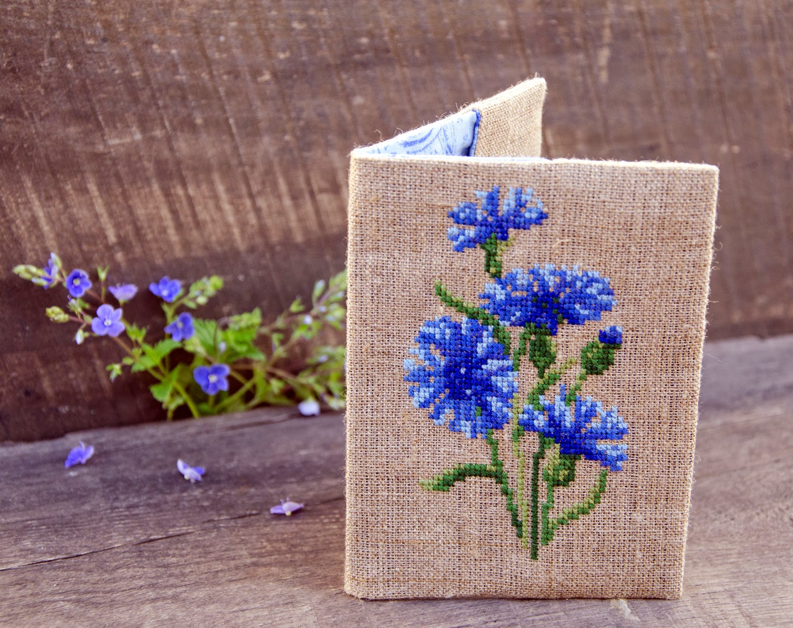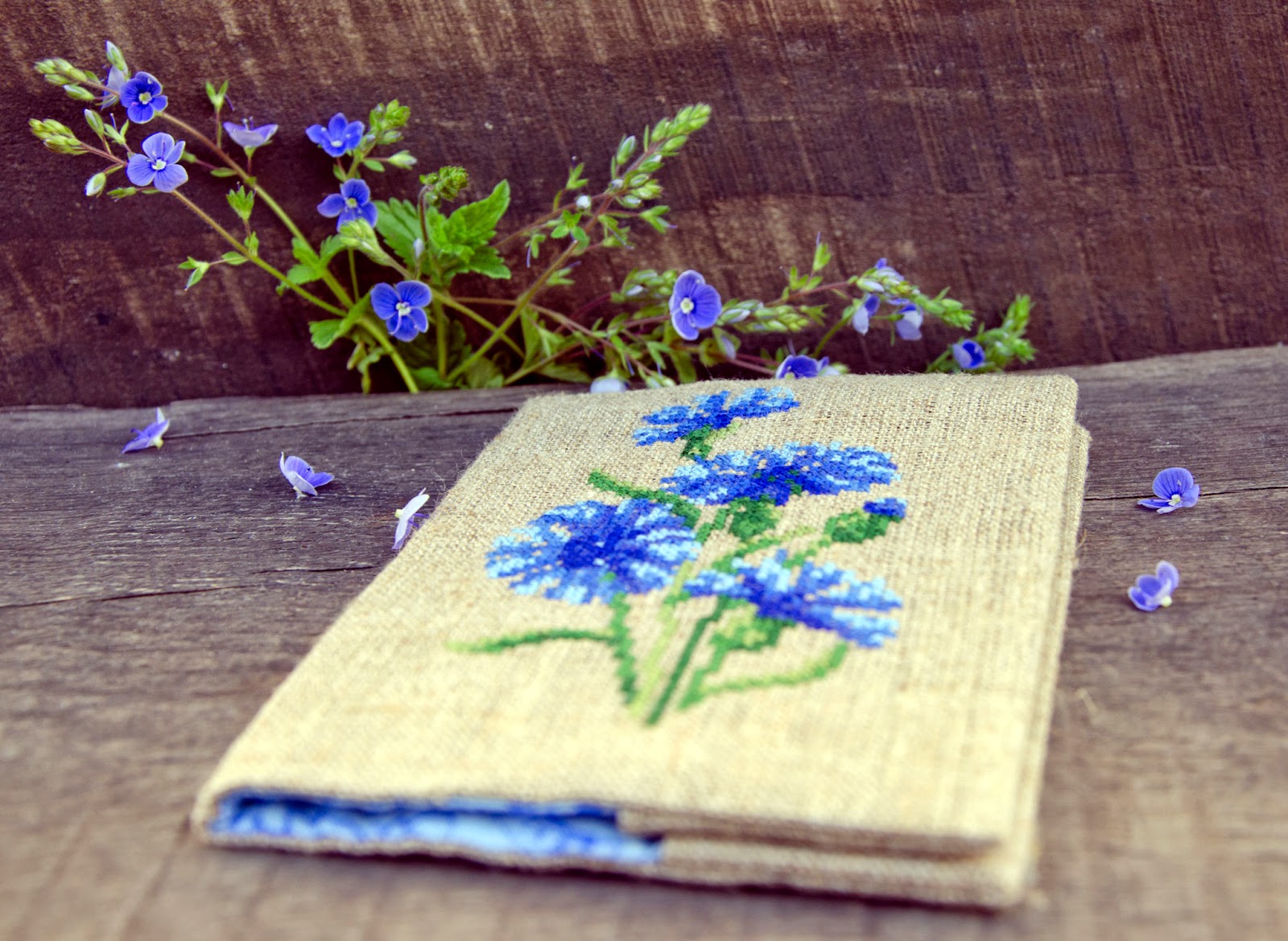 Весною я завжди страждаю від того, що хочеться вишити певні квіти та встигнути їх сфотографувати з оригіналами, доки ті цвітуть :-)) Але не завжди вдається... Цього разу було навпаки - потрібна була обкладинка з волошками, а чекати, доки вони зацвітуть не було можливості :-)) Довелося шукати в садку блакитні квіти для фото :-))